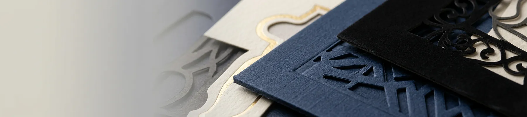 Die cutting removes material to create a shape. Debossing Printing presses a design into the paper surface without cutting through it. You can combine both techniques - a die cut card with a debossed logo, for example - for a truly premium result.