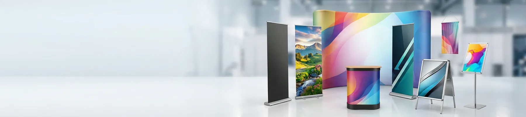 Displays printing pricing ranges from affordable counter cards to larger investments for full-size trade show backdrops. Your final price depends on size, material, quantity, and finishing options. Use the pricing tools on each product page for an instant quote. Explore the full Trade Show Products Printing collection to compare options.