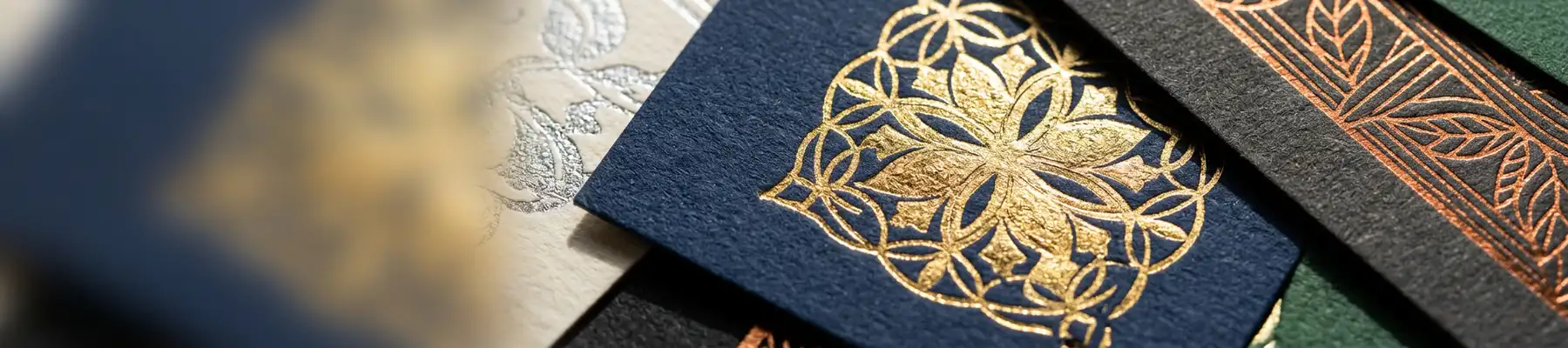 Foil looks different on every stock. Smooth, coated papers give you the crispest foil edges. Textured or uncoated papers create a more organic, artisanal feel but may show slight variation in foil coverage. Browse all available Printing Finishes to see which paper and finish combinations work best with foil.