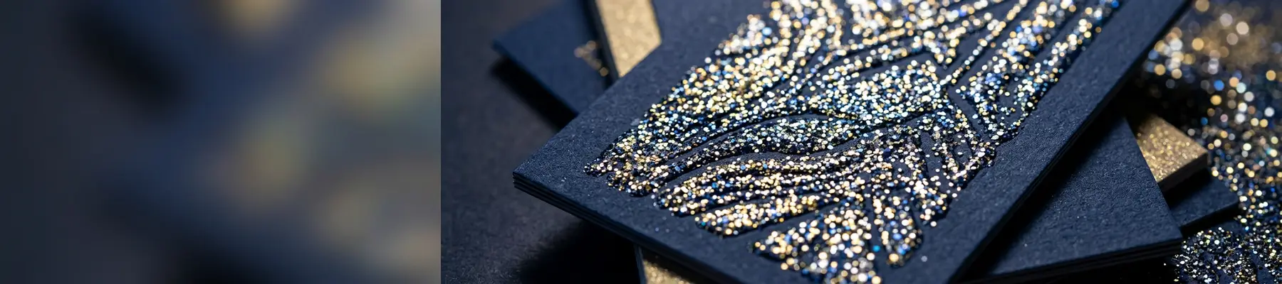 Glitter effect printing isn't just ink on paper. It's a specialty coating applied to specific areas of your design - or the entire surface - that produces a light-catching shimmer. Think of it as controlled sparkle. The texture is smooth enough to write on, sturdy enough to handle, and eye-catching enough to make someone pull your card out of a stack.