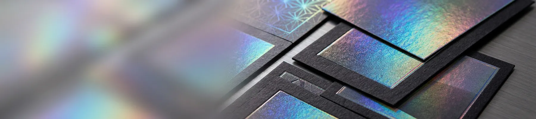 Holographic printing applies a specialized film or foil that refracts light into a rainbow spectrum. When someone tilts your card, sticker, or postcard, the colors shift and dance. It's a physical effect that screens can't replicate - and that's exactly why it grabs attention in a world drowning in digital noise.
