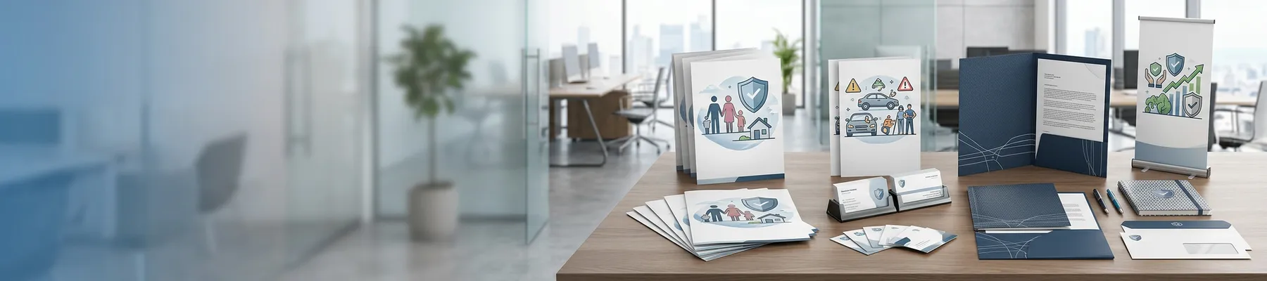 Most insurance professionals start with business cards. That's the bare minimum. But the agencies that grow fastest use a coordinated set: brochures that explain coverage options, postcards for seasonal mailers, presentation folders for new client packets, and door hangers for neighborhood canvassing after a storm. Each product serves a different moment in your sales process.