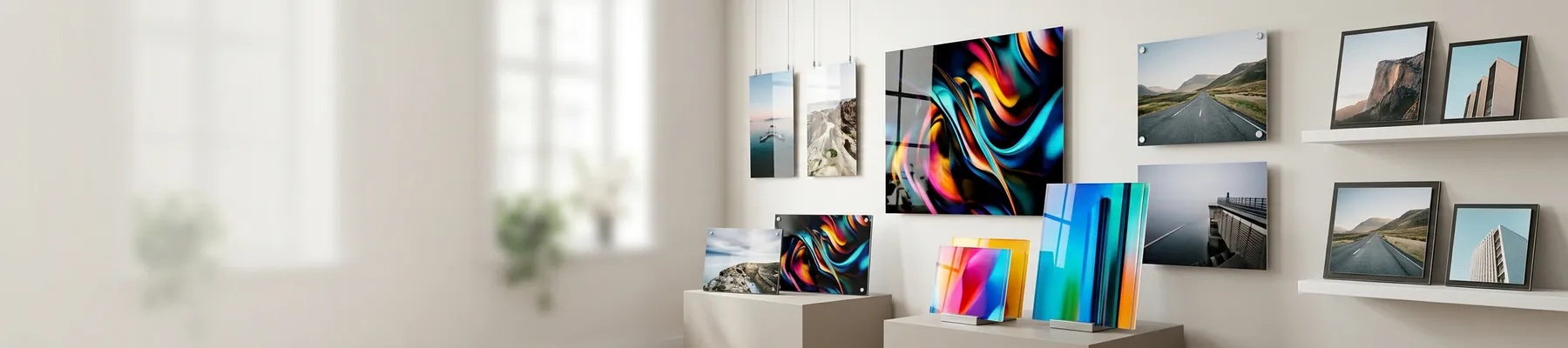 Acrylic-mounted prints have the image printed directly on or bonded behind a sheet of clear acrylic, creating a frameless, modern look with vivid depth. Framed prints use a traditional border and backing. For a sleek gallery aesthetic, Custom Acrylic Prints are the way to go. For a classic, finished look, framed options work better in traditional office or home settings.