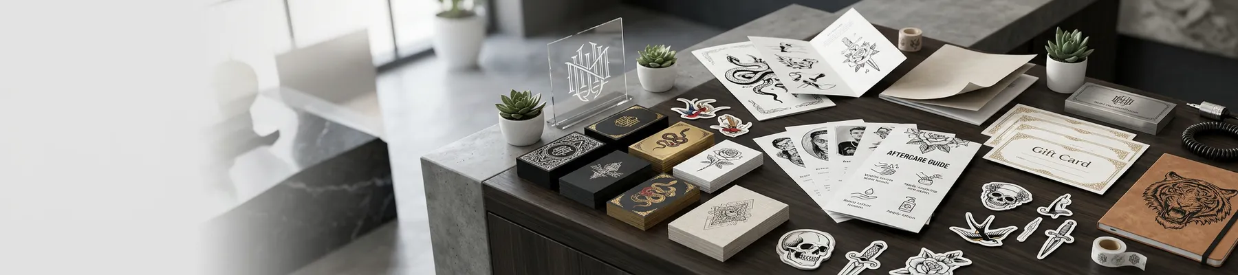 Tattoo studio printing isn't one product. It's an entire ecosystem of materials that keeps your shop running, your brand visible, and your clients coming back. From the moment someone walks past your window to the second they leave with fresh ink, printed materials shape that experience.