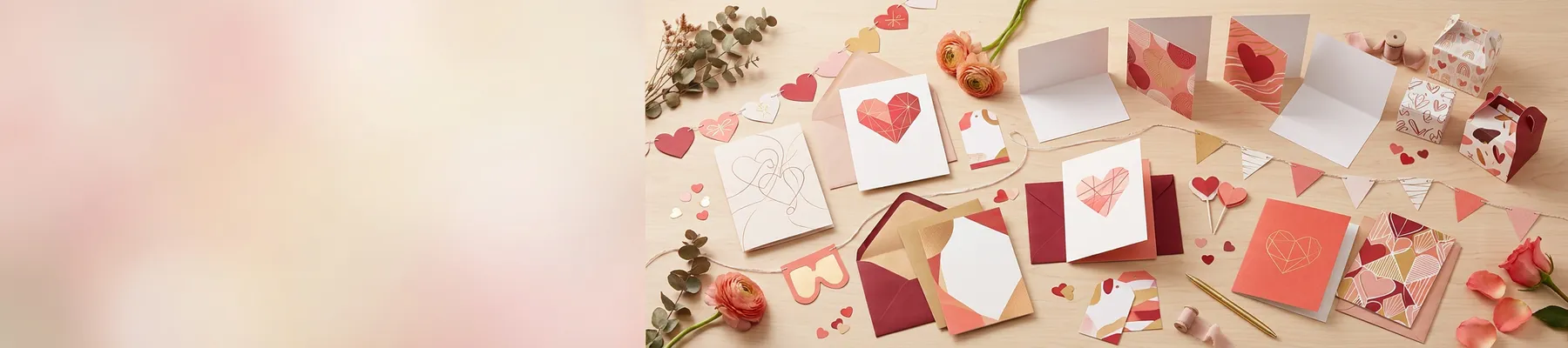 Valentines printing at 4OVER4 isn't a single product. It's a full range of print materials designed around one season and one emotion - love. You'll find greeting cards, postcards, window clings, banners, invitations, and more. Each product comes with options for paper stock, finish, and size so you can match the vibe you're going for - whether that's bold and playful or soft and romantic.